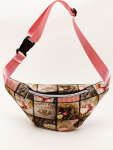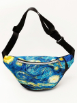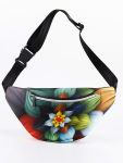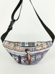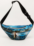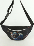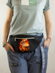 Поясная сумка . Современные разнообразные принты позволяют носить сумку как с повседневной так и со спортивной одеждой. Имеет два больших отделения под молнию. Основное отделение  не содержит дополнительных карманов и отсеков, а представляет из себя одно большое цельное пространство. Сзади карман под молнию. Минимальная длинна ремня 54 см, месте с сумкой минимальная длина окружности составляет 90 см. Максимальная длинна ремня 84 см. Вместе с сумкой максимальная длина окружности 120 см. Ремень оборудован прочным пластиковым замком типа фастекс.