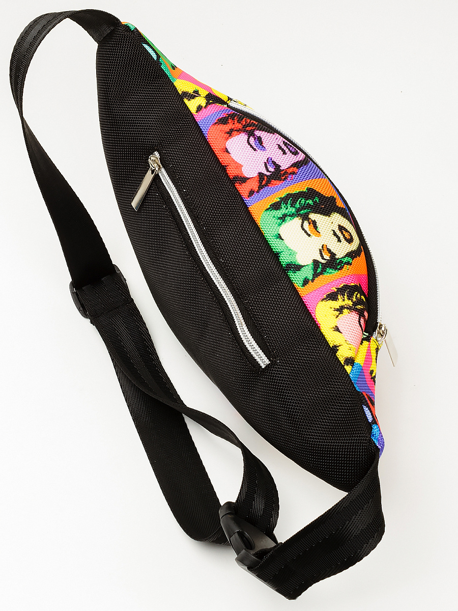 Поясная сумка . Современные разнообразные принты позволяют носить сумку как с повседневной так и со спортивной одеждой. Имеет два больших отделения под молнию. Основное отделение  не содержит дополнительных карманов и отсеков, а представляет из себя одно большое цельное пространство. Сзади карман под молнию. Минимальная длинна ремня 54 см, месте с сумкой минимальная длина окружности составляет 90 см. Максимальная длинна ремня 84 см. Вместе с сумкой максимальная длина окружности 120 см. Ремень оборудован прочным пластиковым замком типа фастекс.