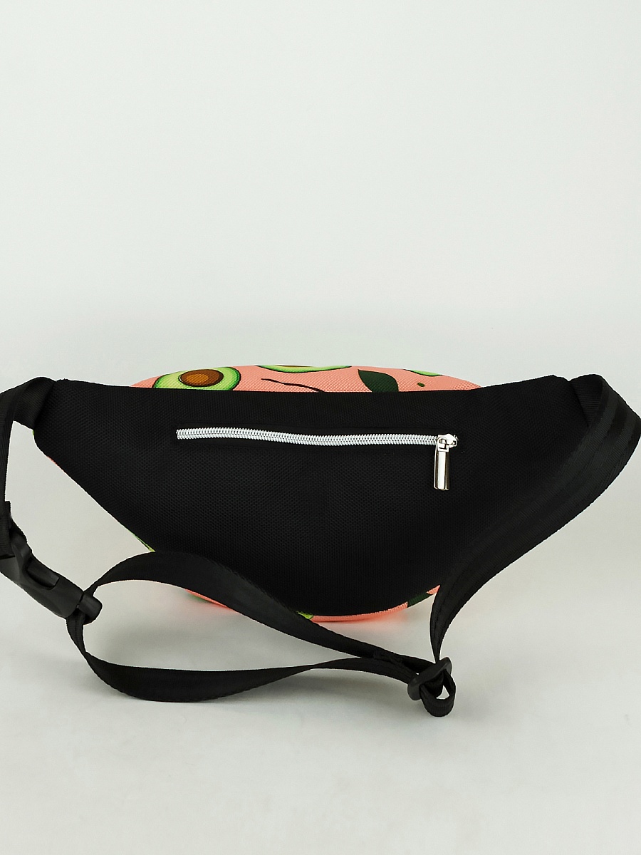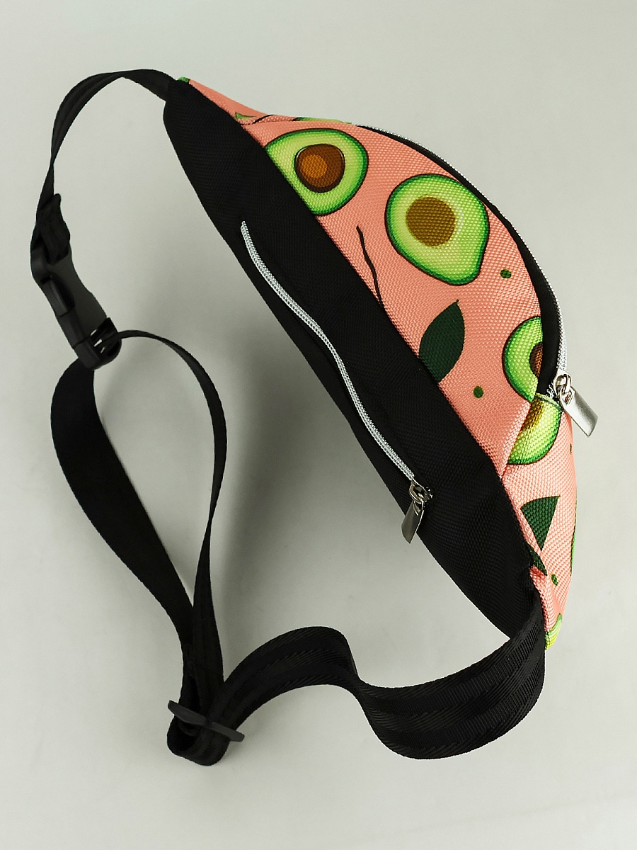 Поясная сумка . Современные разнообразные принты позволяют носить сумку как с повседневной так и со спортивной одеждой. Имеет два больших отделения под молнию. Основное отделение  не содержит дополнительных карманов и отсеков, а представляет из себя одно большое цельное пространство. Сзади карман под молнию. Минимальная длинна ремня 54 см, месте с сумкой минимальная длина окружности составляет 90 см. Максимальная длинна ремня 84 см. Вместе с сумкой максимальная длина окружности 120 см. Ремень оборудован прочным пластиковым замком типа фастекс.
