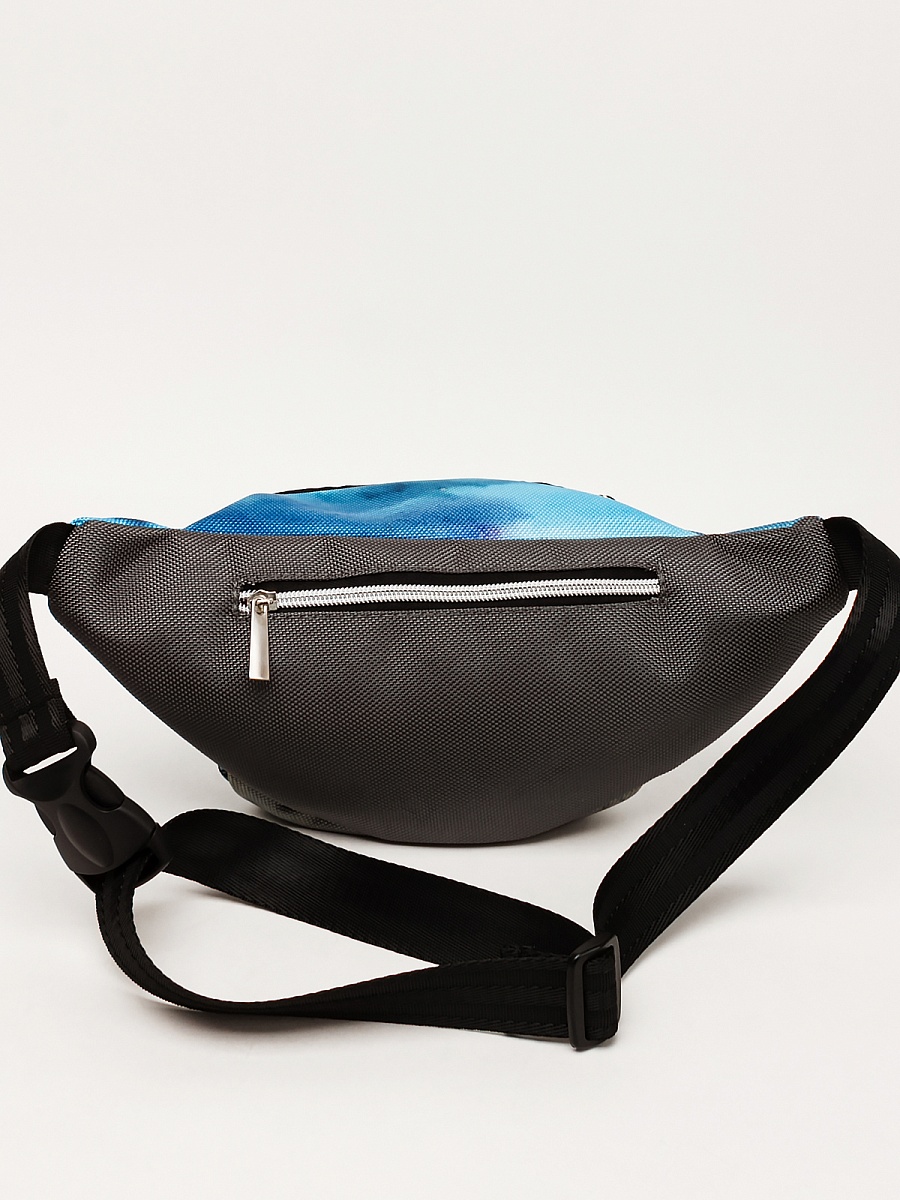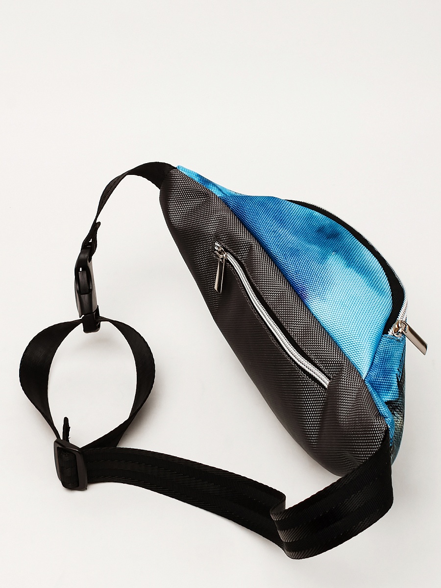 Поясная сумка . Современные разнообразные принты позволяют носить сумку как с повседневной так и со спортивной одеждой. Имеет два больших отделения под молнию. Основное отделение  не содержит дополнительных карманов и отсеков, а представляет из себя одно большое цельное пространство. Сзади карман под молнию. Минимальная длинна ремня 54 см, месте с сумкой минимальная длина окружности составляет 90 см. Максимальная длинна ремня 84 см. Вместе с сумкой максимальная длина окружности 120 см. Ремень оборудован прочным пластиковым замком типа фастекс.