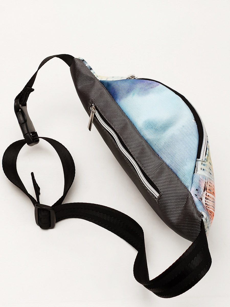Поясная сумка . Современные разнообразные принты позволяют носить сумку как с повседневной так и со спортивной одеждой. Имеет два больших отделения под молнию. Основное отделение  не содержит дополнительных карманов и отсеков, а представляет из себя одно большое цельное пространство. Сзади карман под молнию. Минимальная длинна ремня 54 см, месте с сумкой минимальная длина окружности составляет 90 см. Максимальная длинна ремня 84 см. Вместе с сумкой максимальная длина окружности 120 см. Ремень оборудован прочным пластиковым замком типа фастекс.