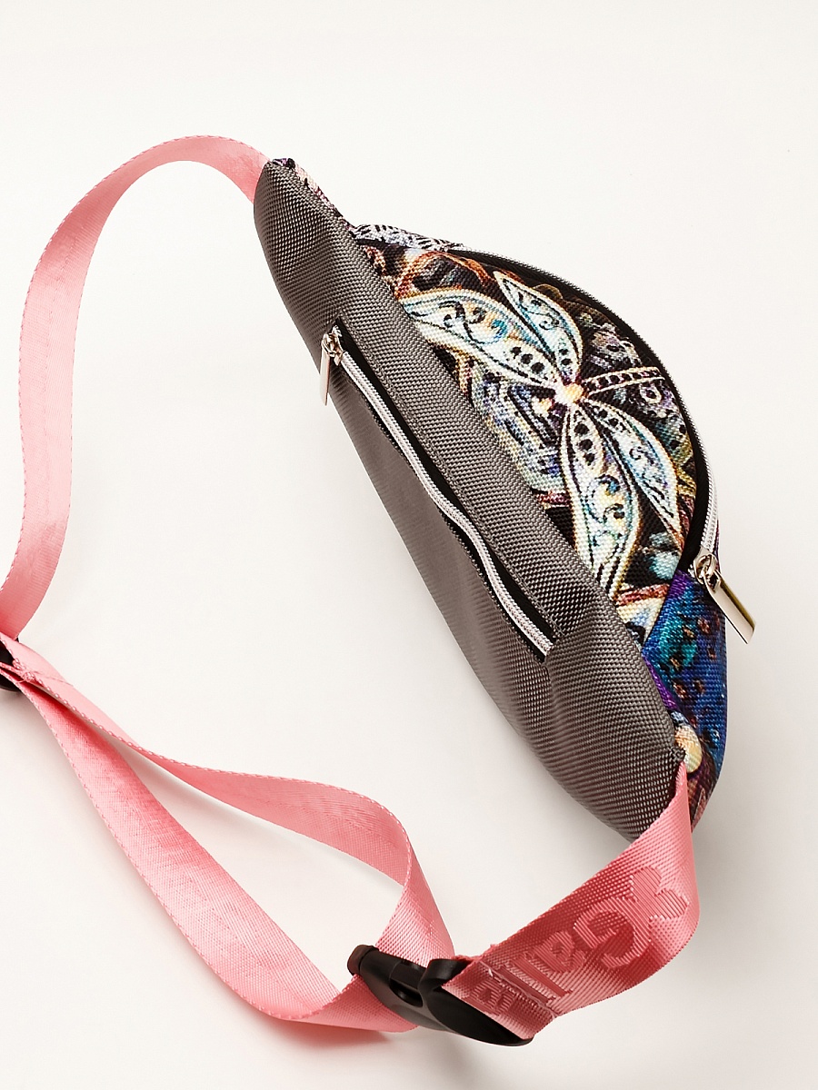 Поясная сумка . Современные разнообразные принты позволяют носить сумку как с повседневной так и со спортивной одеждой. Имеет два больших отделения под молнию. Основное отделение  не содержит дополнительных карманов и отсеков, а представляет из себя одно большое цельное пространство. Сзади карман под молнию. Минимальная длинна ремня 54 см, месте с сумкой минимальная длина окружности составляет 90 см. Максимальная длинна ремня 84 см. Вместе с сумкой максимальная длина окружности 120 см. Ремень оборудован прочным пластиковым замком типа фастекс.