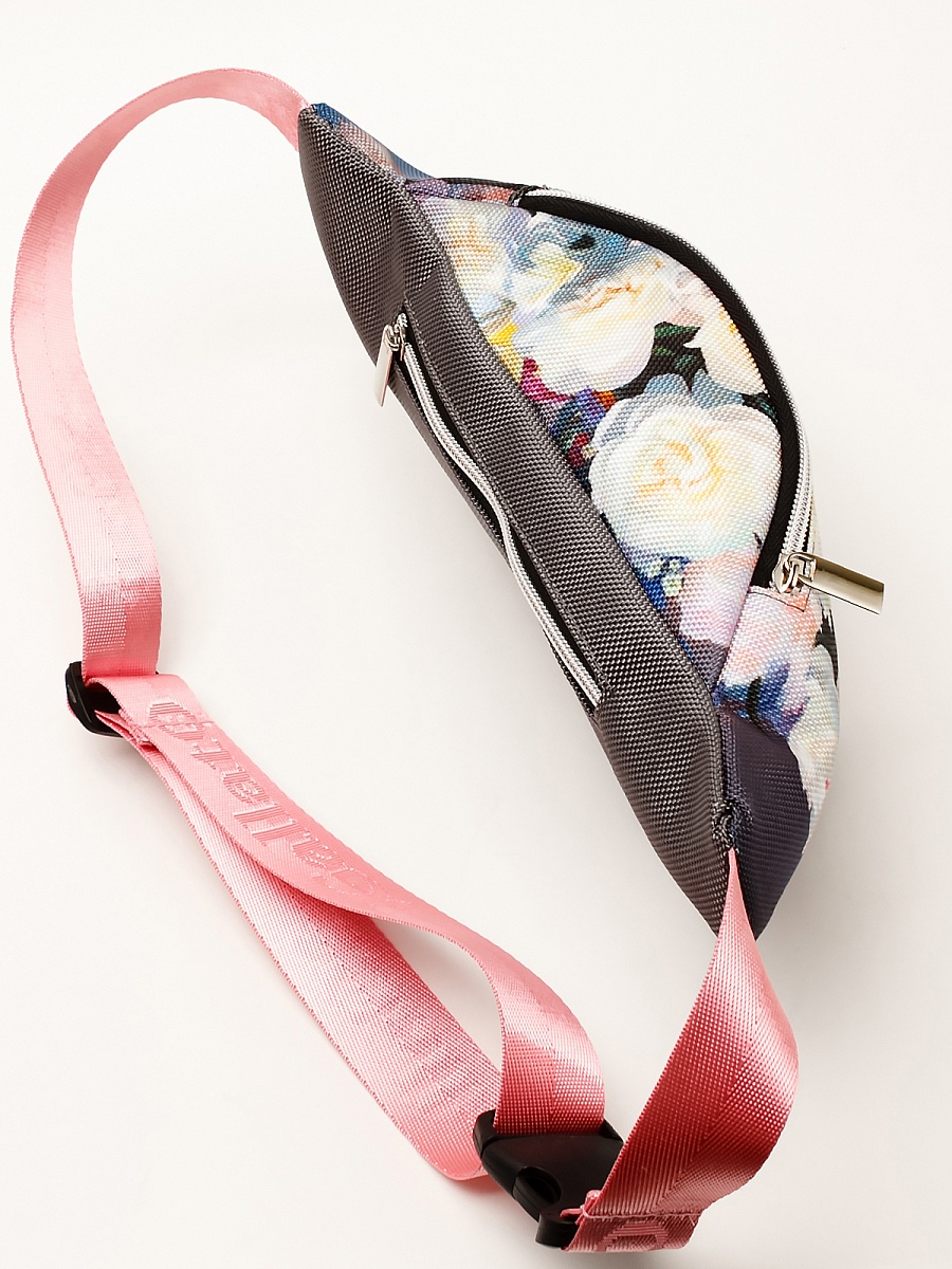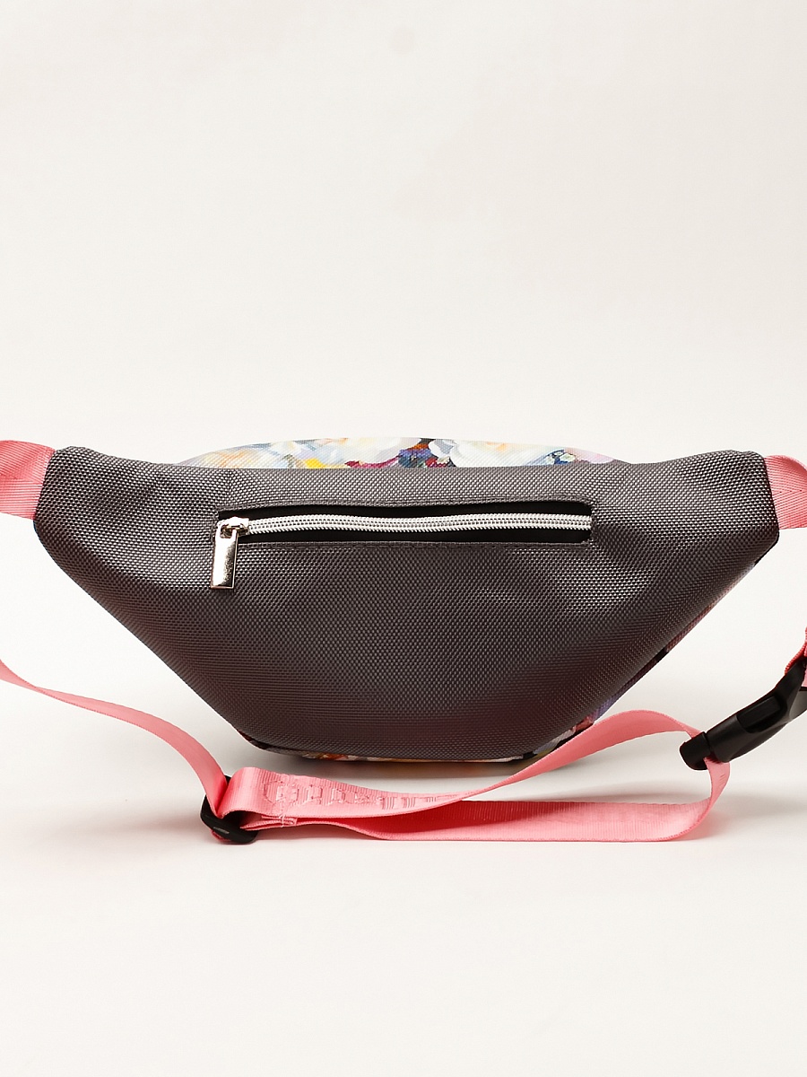 Поясная сумка . Современные разнообразные принты позволяют носить сумку как с повседневной так и со спортивной одеждой. Имеет два больших отделения под молнию. Основное отделение  не содержит дополнительных карманов и отсеков, а представляет из себя одно большое цельное пространство. Сзади карман под молнию. Минимальная длинна ремня 54 см, месте с сумкой минимальная длина окружности составляет 90 см. Максимальная длинна ремня 84 см. Вместе с сумкой максимальная длина окружности 120 см. Ремень оборудован прочным пластиковым замком типа фастекс.