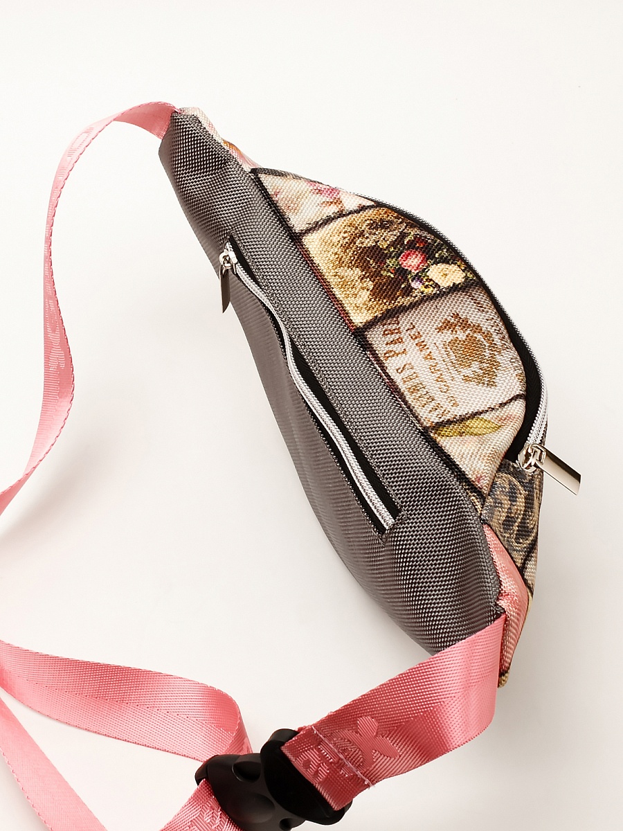 Поясная сумка . Современные разнообразные принты позволяют носить сумку как с повседневной так и со спортивной одеждой. Имеет два больших отделения под молнию. Основное отделение  не содержит дополнительных карманов и отсеков, а представляет из себя одно большое цельное пространство. Сзади карман под молнию. Минимальная длинна ремня 54 см, месте с сумкой минимальная длина окружности составляет 90 см. Максимальная длинна ремня 84 см. Вместе с сумкой максимальная длина окружности 120 см. Ремень оборудован прочным пластиковым замком типа фастекс.