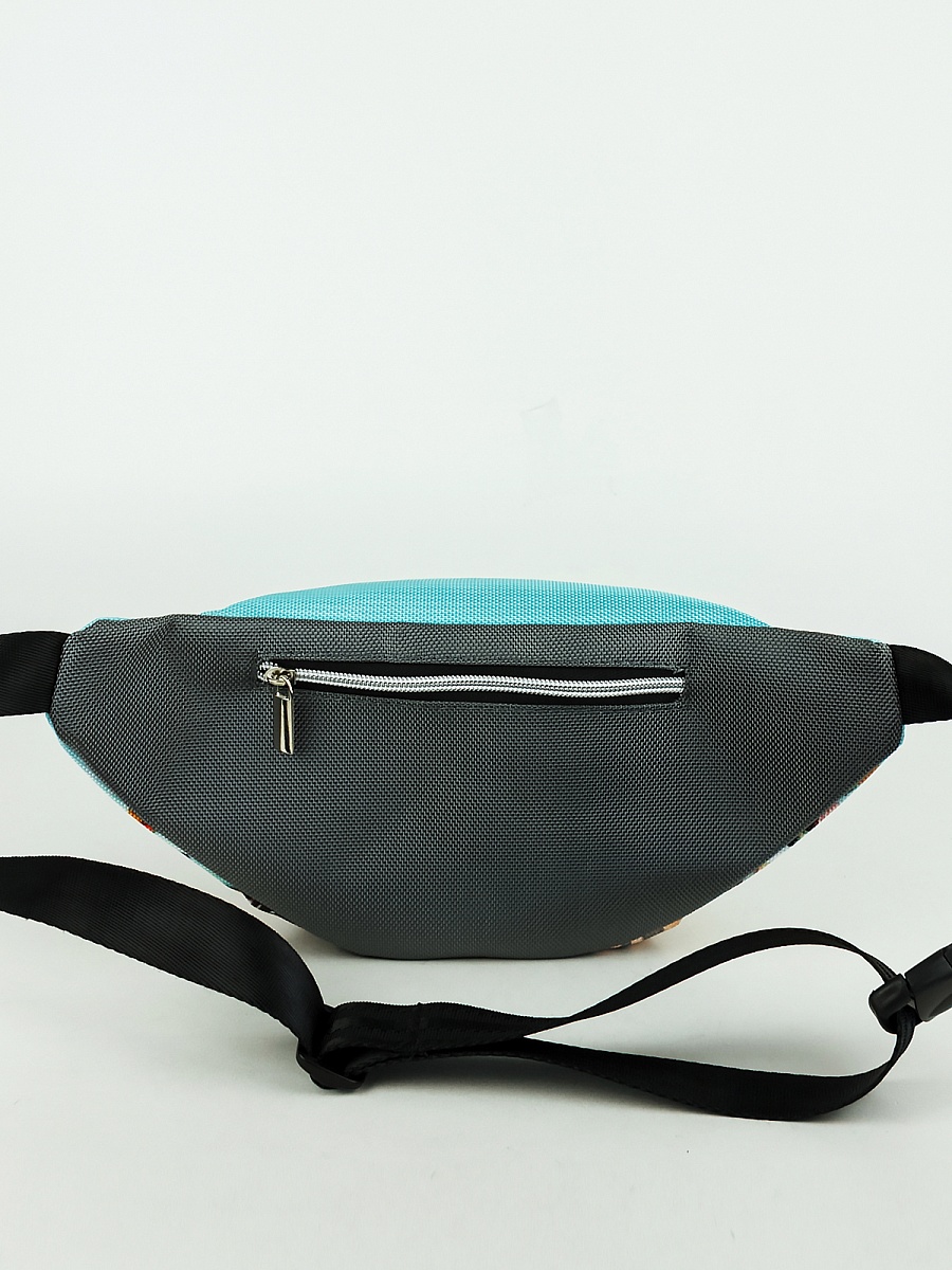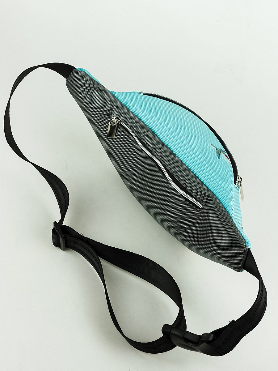 Поясная сумка . Современные разнообразные принты позволяют носить сумку как с повседневной так и со спортивной одеждой. Имеет два больших отделения под молнию. Основное отделение  не содержит дополнительных карманов и отсеков, а представляет из себя одно большое цельное пространство. Сзади карман под молнию. Минимальная длинна ремня 54 см, месте с сумкой минимальная длина окружности составляет 90 см. Максимальная длинна ремня 84 см. Вместе с сумкой максимальная длина окружности 120 см. Ремень оборудован прочным пластиковым замком типа фастекс.