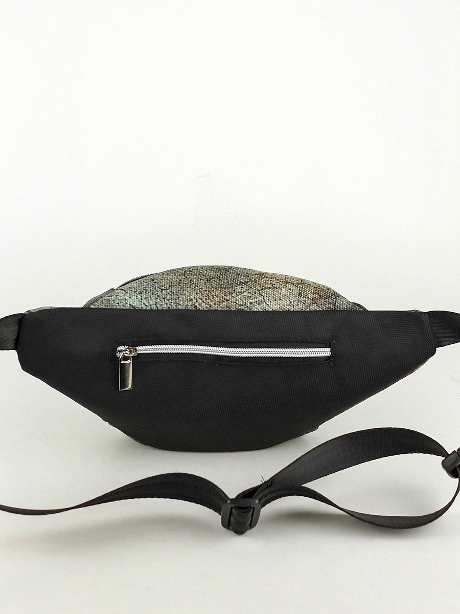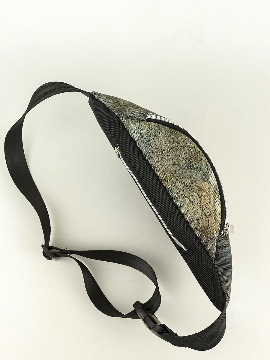 Поясная сумка . Современные разнообразные принты позволяют носить сумку как с повседневной так и со спортивной одеждой. Имеет два больших отделения под молнию. Основное отделение  не содержит дополнительных карманов и отсеков, а представляет из себя одно большое цельное пространство. Сзади карман под молнию. Минимальная длинна ремня 54 см, месте с сумкой минимальная длина окружности составляет 90 см. Максимальная длинна ремня 84 см. Вместе с сумкой максимальная длина окружности 120 см. Ремень оборудован прочным пластиковым замком типа фастекс.