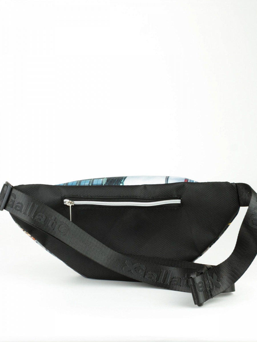 Поясная сумка . Современные разнообразные принты позволяют носить сумку как с повседневной так и со спортивной одеждой. Имеет два больших отделения под молнию. Основное отделение  не содержит дополнительных карманов и отсеков, а представляет из себя одно большое цельное пространство. Сзади карман под молнию. Минимальная длинна ремня 54 см, месте с сумкой минимальная длина окружности составляет 90 см. Максимальная длинна ремня 84 см. Вместе с сумкой максимальная длина окружности 120 см. Ремень оборудован прочным пластиковым замком типа фастекс.