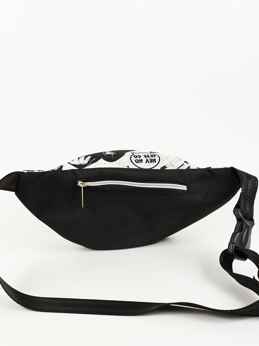 Поясная сумка . Современные разнообразные принты позволяют носить сумку как с повседневной так и со спортивной одеждой. Имеет два больших отделения под молнию. Основное отделение  не содержит дополнительных карманов и отсеков, а представляет из себя одно большое цельное пространство. Сзади карман под молнию. Минимальная длинна ремня 54 см, месте с сумкой минимальная длина окружности составляет 90 см. Максимальная длинна ремня 84 см. Вместе с сумкой максимальная длина окружности 120 см. Ремень оборудован прочным пластиковым замком типа фастекс.