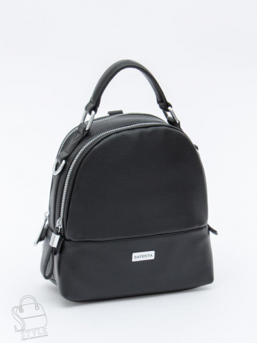 Рюкзак-трансформер, выполнен из экокожи. Декорирован логотипом на передней части. Дополнен серебристой фурнитурой. Данная модель закрывается на молнии, носится как сумка за встроенную ручку или на плече, а так же как рюкзак. Съемные ремни перестегиваются и регулируются по длине.