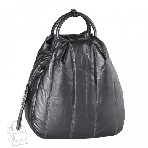 Рюкзак-трансформер каплевидной формы, выполнен из экокожи. Декорирован стежкой.  Дополнен серебристой фурнитурой. Данная модель закрывается на молнию. Каркас мягкий. Носится как рюкзак или как сумка. Ремни съемные с регулировкой длины. Две мягкие ручки встроенные и фиксируются.