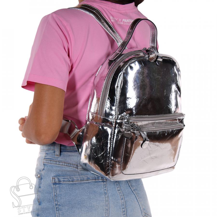 Рюкзак женский кожаный 21032 silver Polina&Eiterou