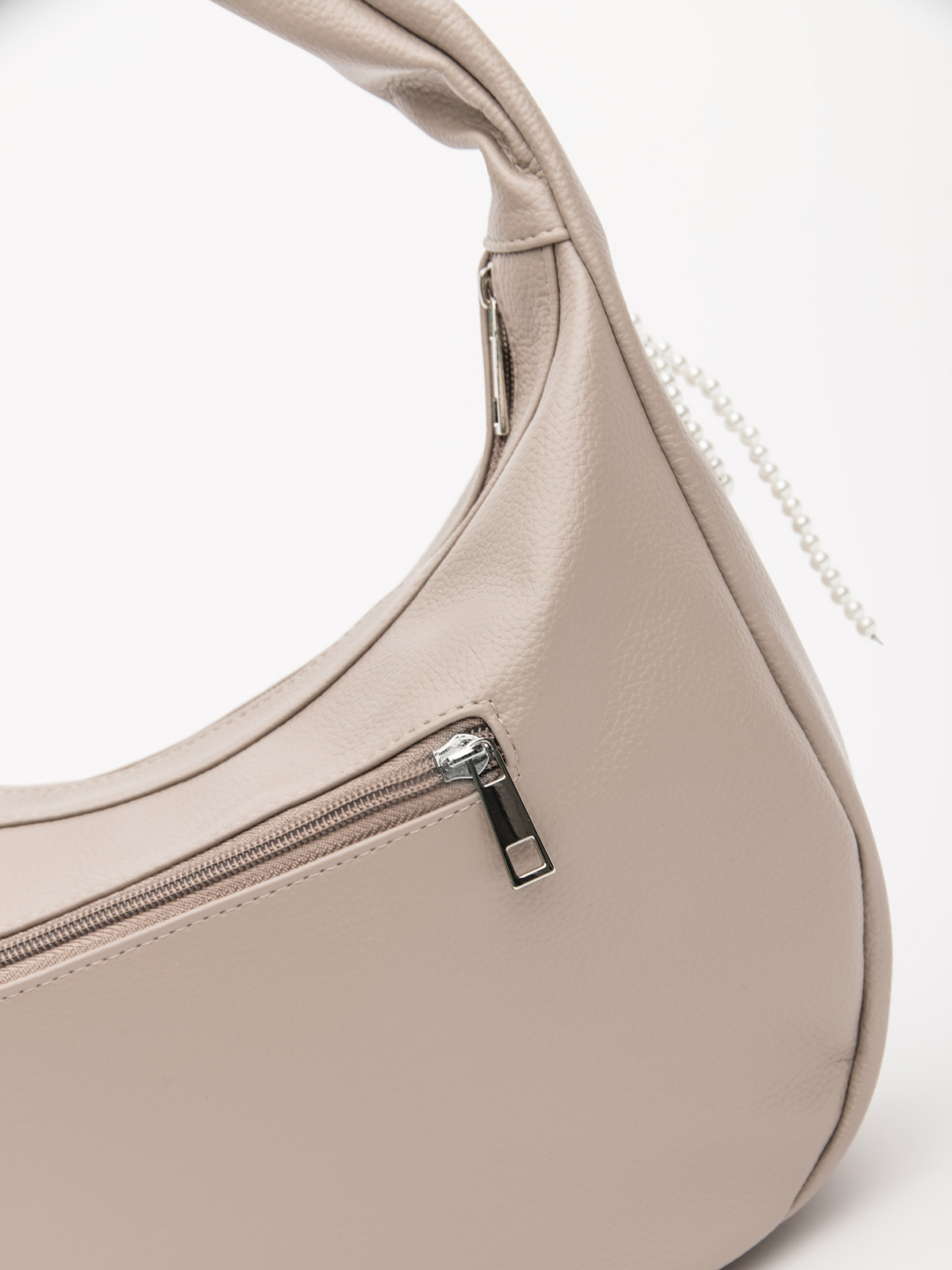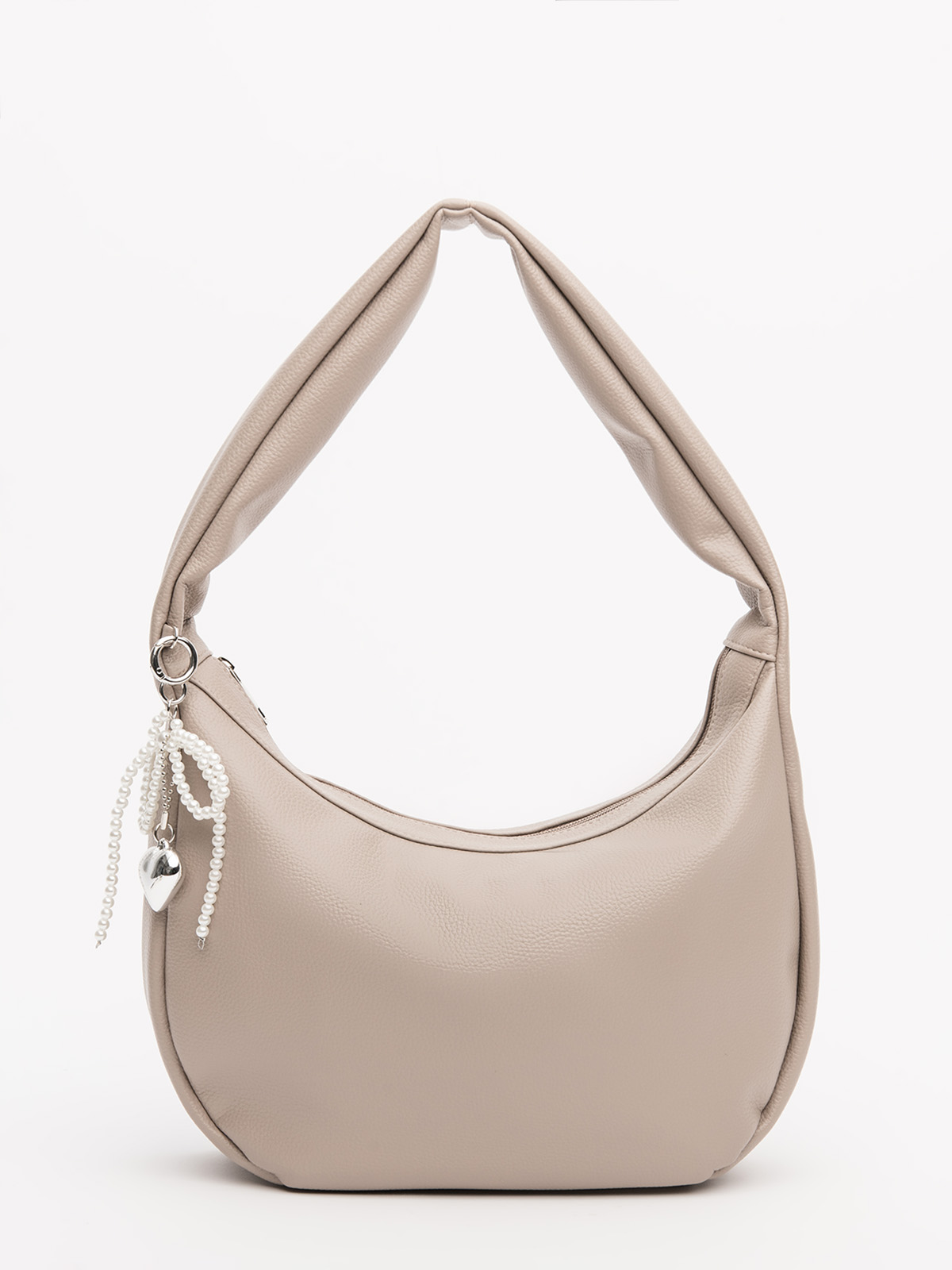 Ручка удобной длины позволяет носить сумку на плече или в руке, а съёмный декор-подвес добавляет индивидуальности — его можно менять в зависимости от настроения. Практичный карман на молнии снаружи и два кармана внутри (на молнии и открытый) помогают удобно организовать пространство.