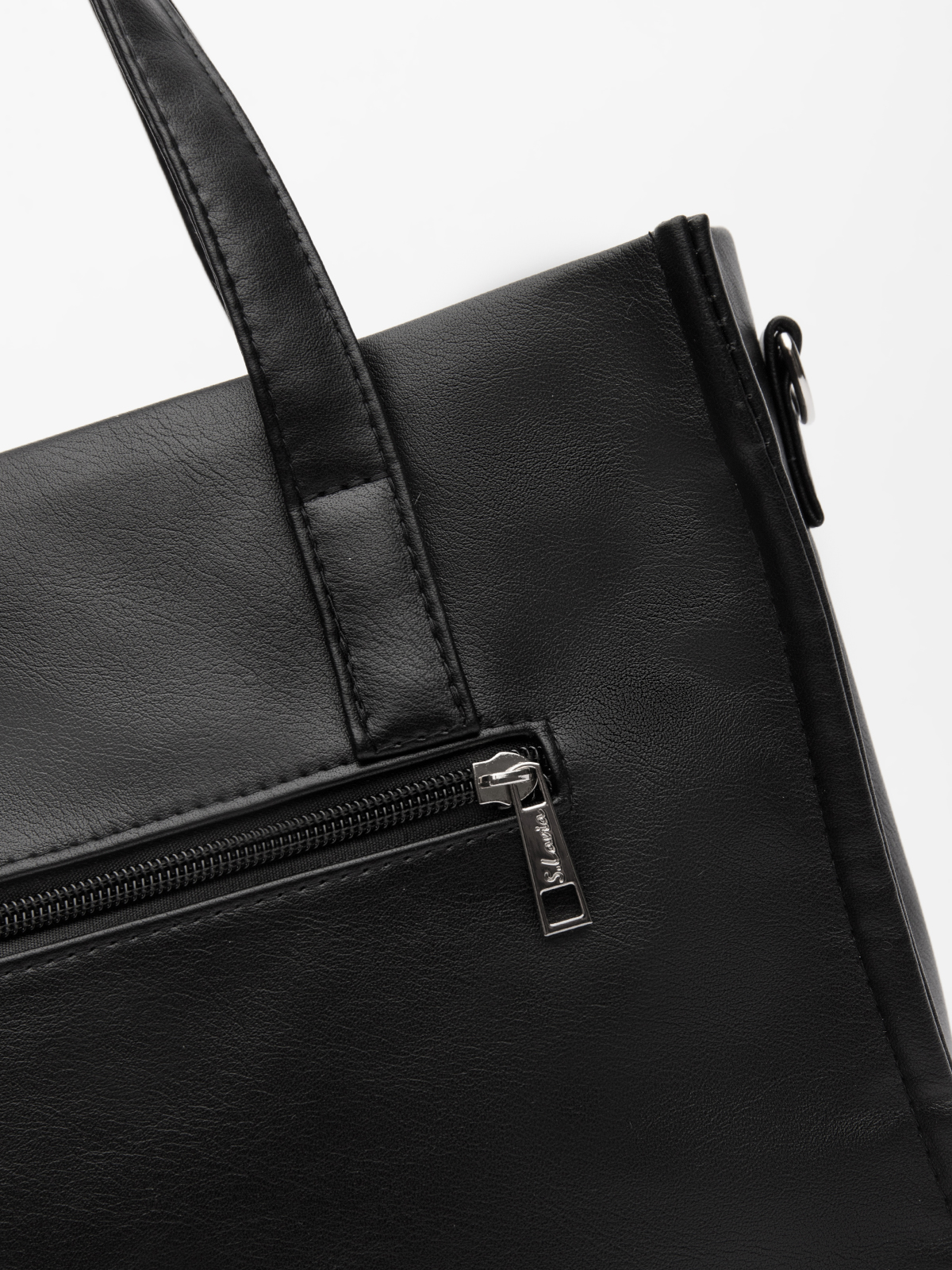Формоустойчивая конструкция из винилискожи сохраняет чёткие линии тоута, защищая содержимое. Вместительный объём позволяет носить документы формата А4 и все необходимые вещи. Минималистичный дизайн легко сочетается с разными стилями одежды. В комплекте две ручки и съёмный ремень для разных вариантов ношения. Качественные материалы и продуманная конструкция предлагают отличное соотношение цены и функциональности.