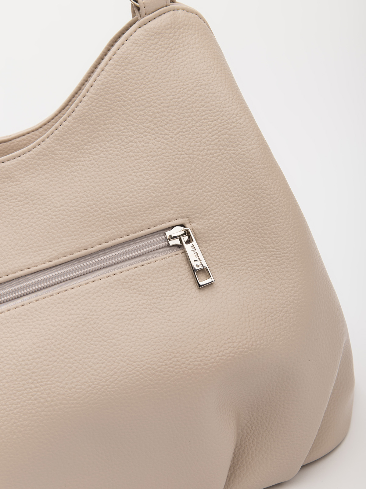 Модель с овальным дном и фигурными складками передает уютное очарование традиционного дизайна, дополненного современными деталями. Центральное отделение на спиральной молнии и продуманная организация внутри — перегородка, карман для телефона и дополнительный карман на молнии — делают её по-настоящему удобной для повседневного использования.
