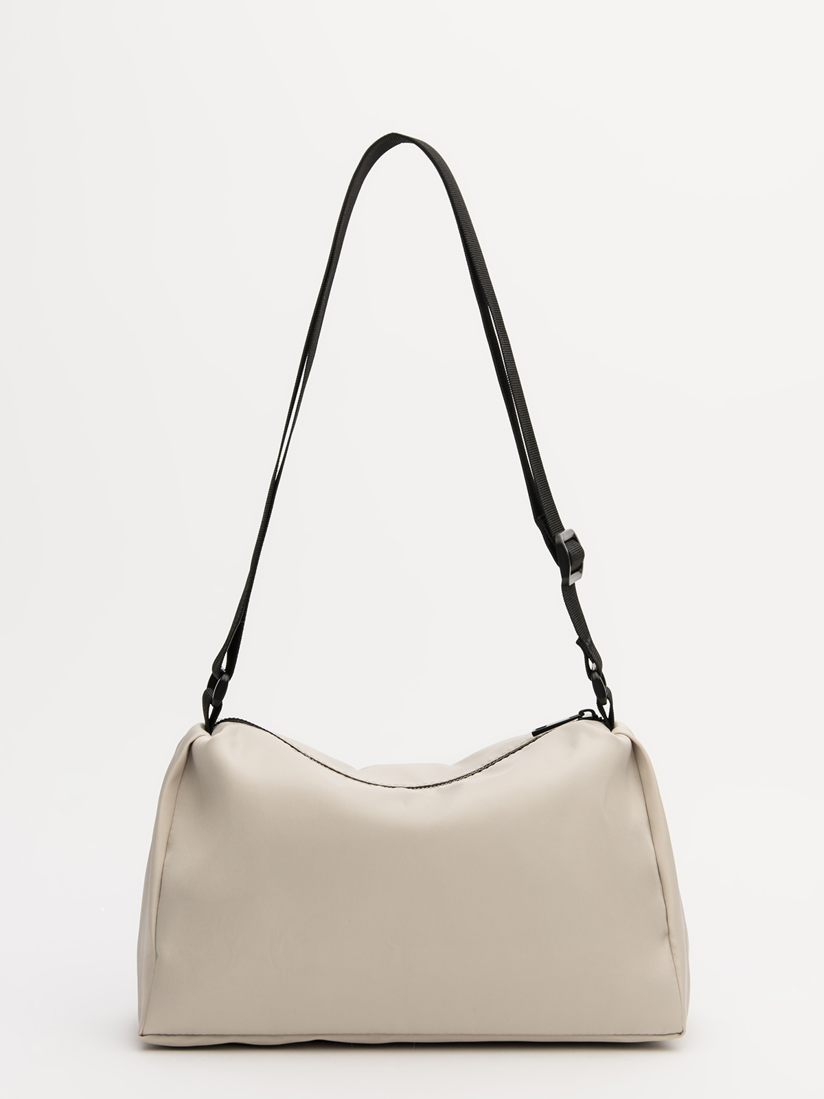 Мягкая форма из практичного твила сохраняет стильный силуэт, оставаясь удивительно вместительной. Длинный ремень из прочной стропы с фирменной нашивкой добавляет образу спортивный шик, а дополнительные карманы помогают удобно организовать даже объёмные вещи.