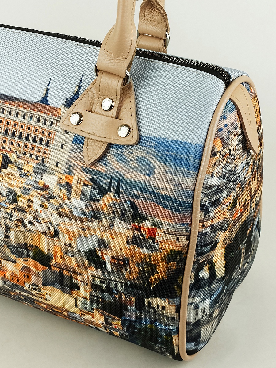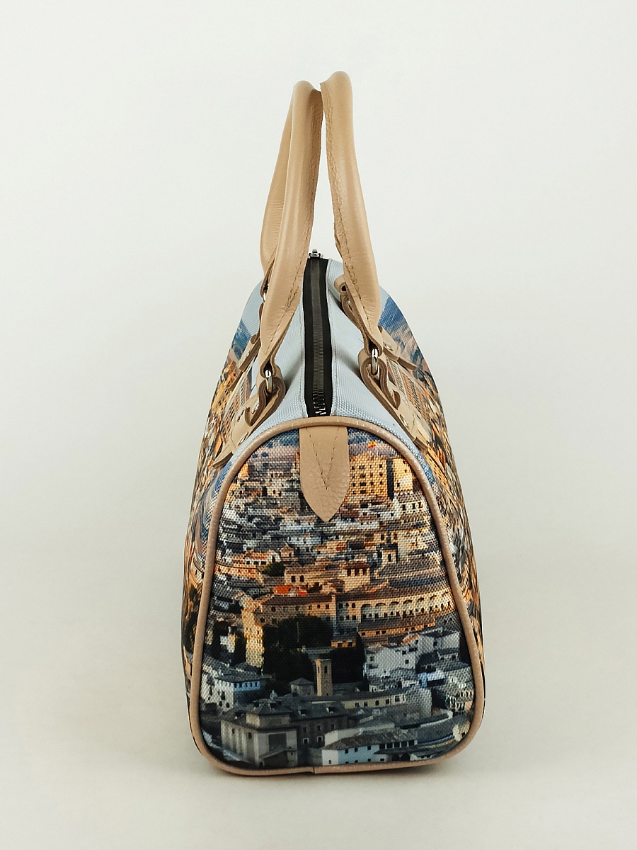 Современная, удобная, сумка выполнена из текстиля, с ручками и отделкой из натуральной кожи, внутри сумки есть 2 открытых кармана для мелочей, один на молнии и еще один для документов формата А5. Легкая, проста в уходе. Ткань не линяет. Сумки торговой марки Gallato сделаны из армированного нейлона с водоотталкивающей полиуретановой пропиткой.