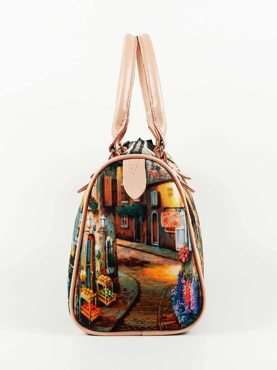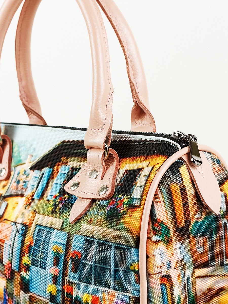 Современная, удобная, сумка выполнена из текстиля, с ручками и отделкой из натуральной кожи, внутри сумки есть 2 открытых кармана для мелочей, один на молнии и еще один для документов формата А5. Легкая, проста в уходе. Ткань не линяет. Сумки торговой марки Gallato сделаны из армированного нейлона с водоотталкивающей полиуретановой пропиткой.