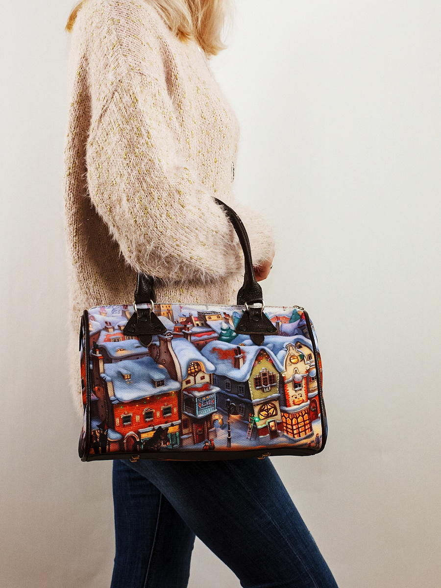 Современная, удобная, сумка выполнена из текстиля, с ручками и отделкой из натуральной кожи, внутри сумки есть 2 открытых кармана для мелочей, один на молнии и еще один для документов формата А5. Легкая, проста в уходе. Ткань не линяет. Сумки торговой марки Gallato сделаны из армированного нейлона с водоотталкивающей полиуретановой пропиткой.
