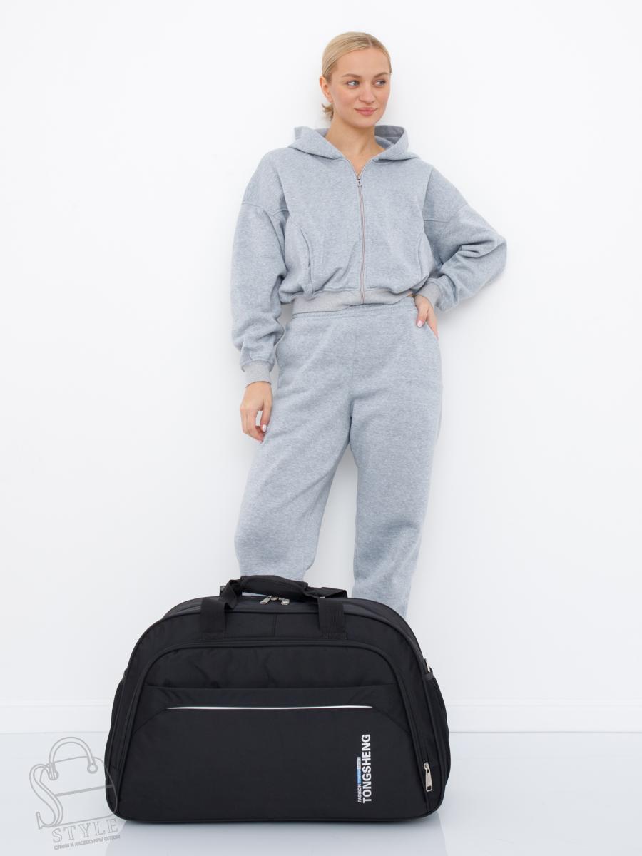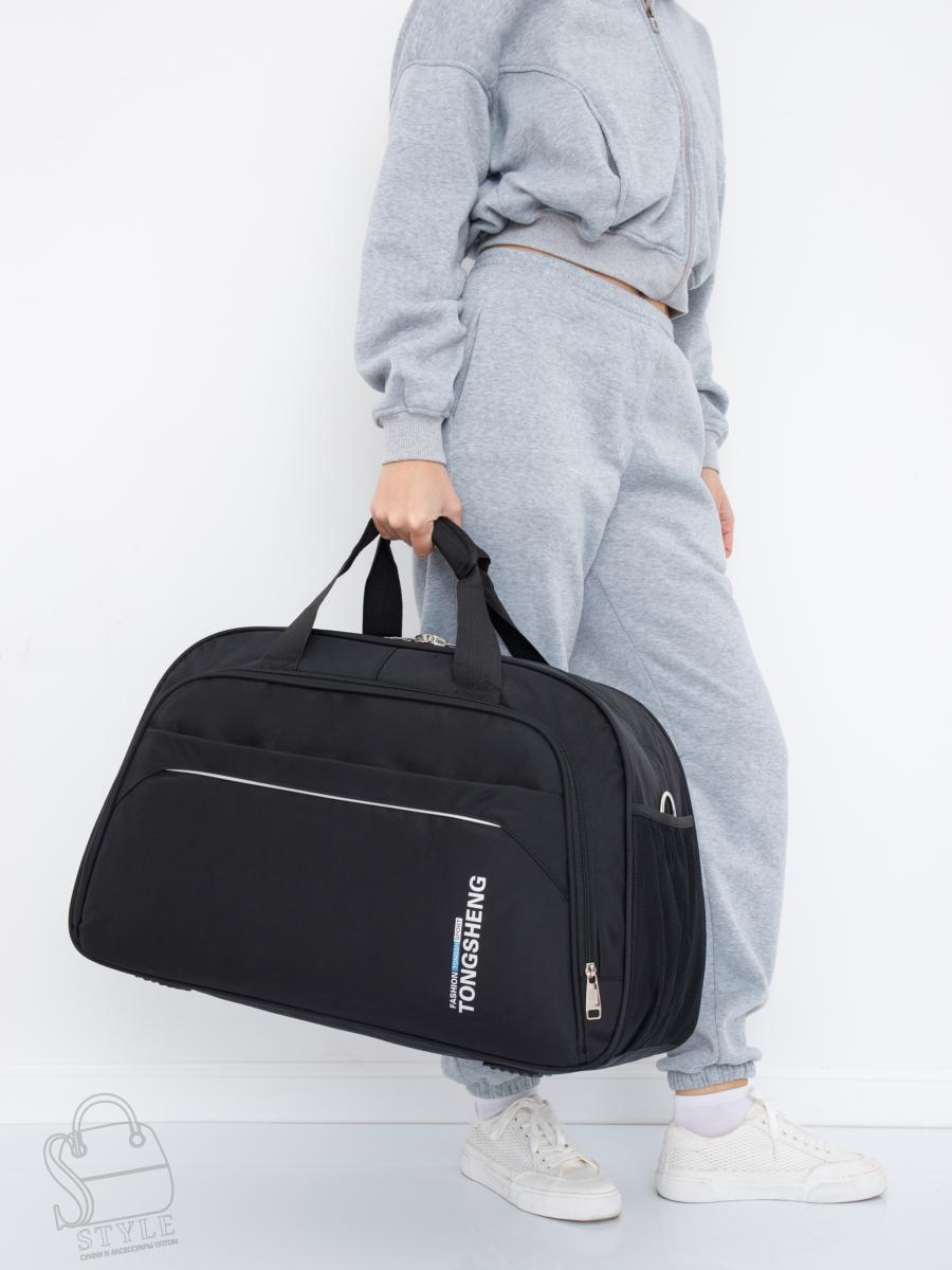 Дорожная сумка выполнена из текстиля. Дополнена серебристой фурнитурой. Данная модель закрывается на молнию, носится в руке или на плече с помощью ремня. В комплекте предусмотрен ремень-стропа с регулировкой длины. Каркас мягкий.