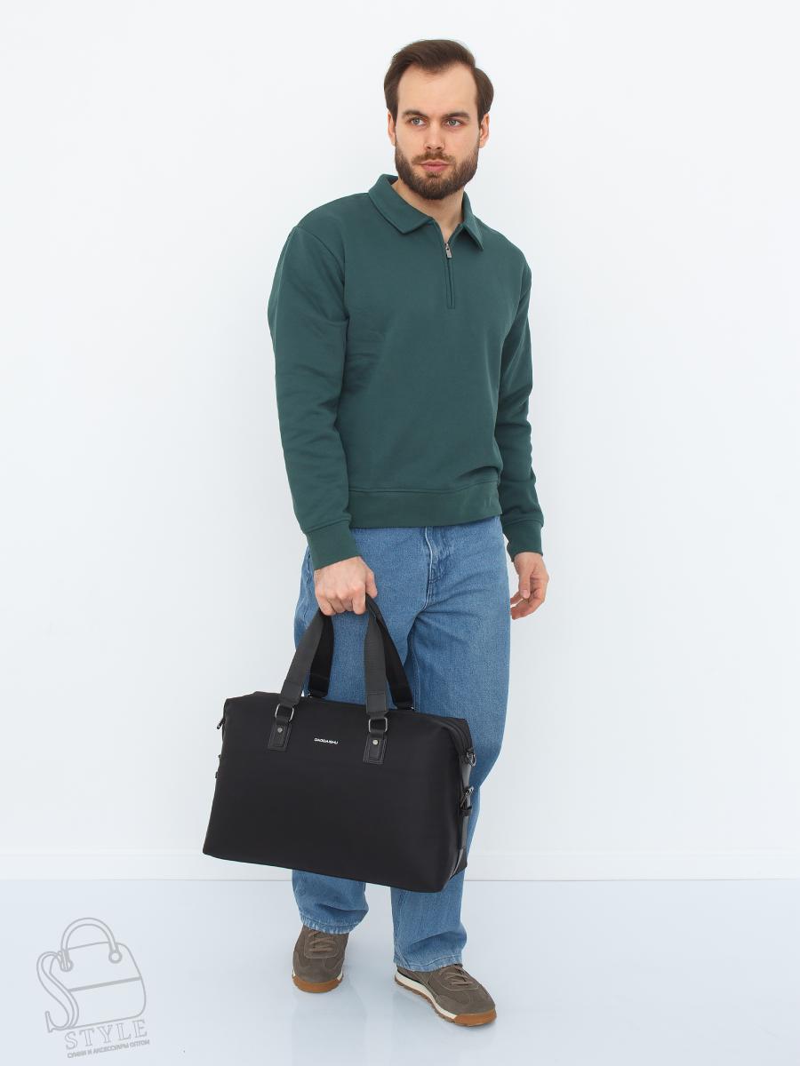 Дорожная сумка выполнена из текстиля. Дополнена серебристой фурнитурой. Данная модель закрывается на молнию, носится в руке за встроенные ручки или на плече с помощью ремня. В комплекте предусмотрен ремень-стропа с регулировкой длины.  Каркас мягкий.