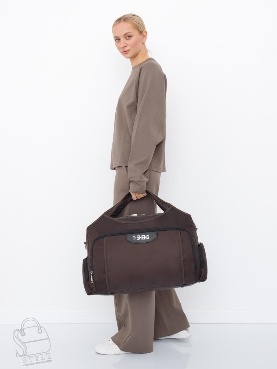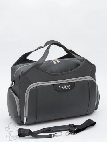 Дорожная сумка выполнена из текстиля. Дополнена серебристой фурнитурой. Данная модель закрывается на молнии, носится в руке за встроенные ручки или на плече с помощью ремня. В комплекте предусмотрен ремень-стропа с регулировкой длины.  Каркас мягкий.