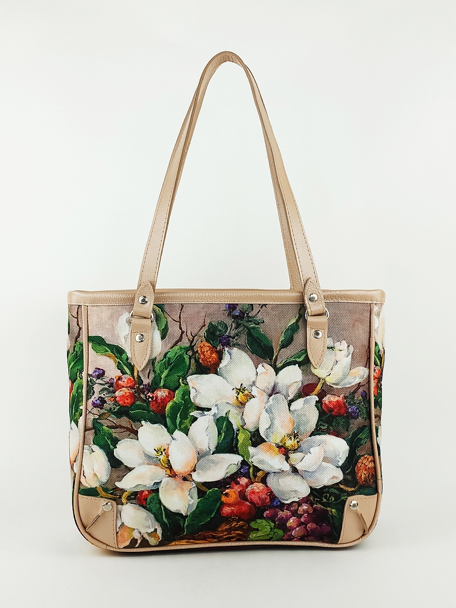 Современная, удобная, сумка выполнена из текстиля, с ручками и отделкой из натуральной кожи, внутри сумки есть 2 открытых кармана для мелочей и один на молнии, легкая, проста в уходе. В сумку входят документы формата А4. Подходит для ношения на плече.