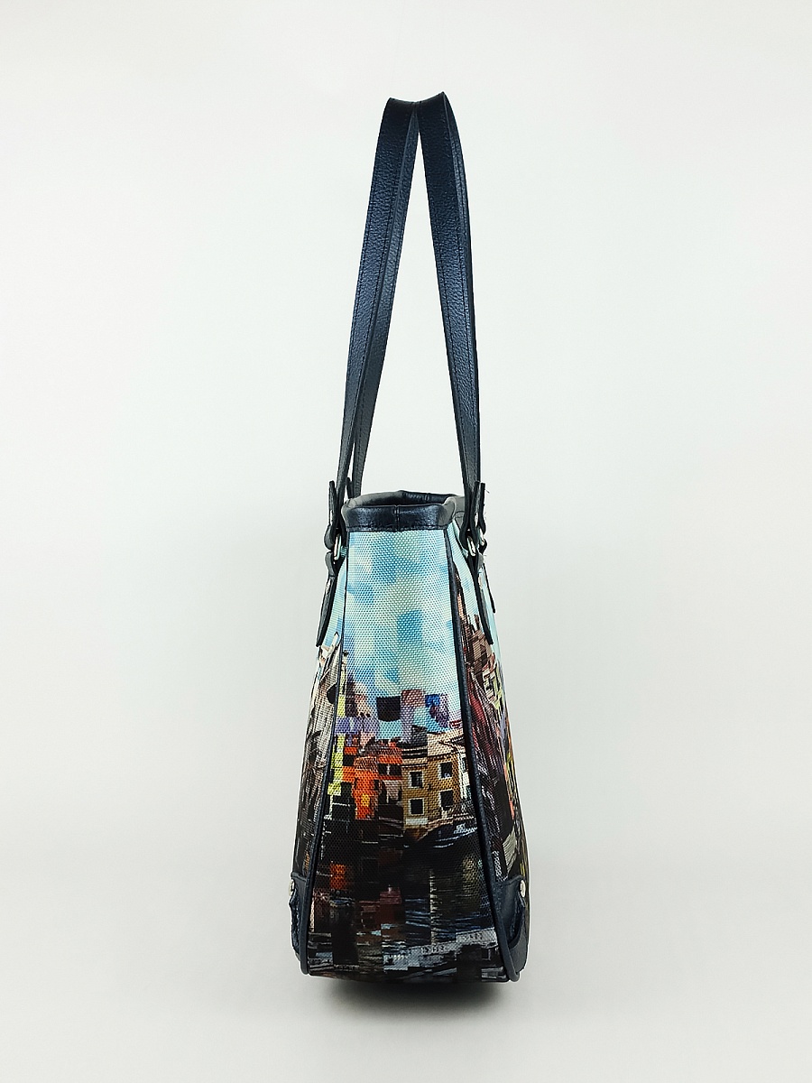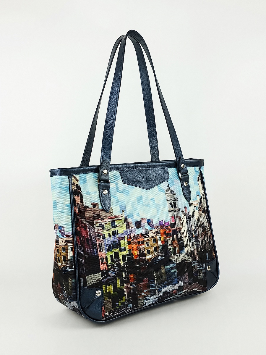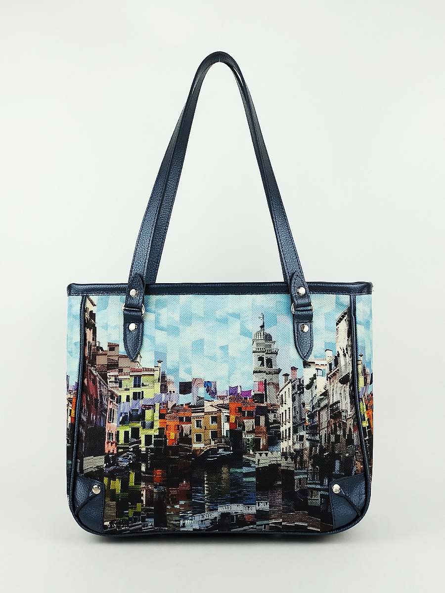 Современная, удобная, сумка выполнена из текстиля, с ручками и отделкой из натуральной кожи, внутри сумки есть 2 открытых кармана для мелочей и один на молнии, легкая, проста в уходе. В сумку входят документы формата А4. Подходит для ношения на плече.