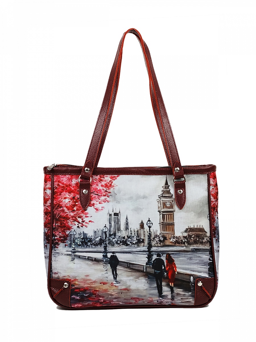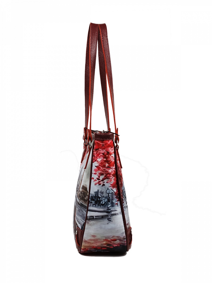 Современная, удобная, сумка выполнена из текстиля, с ручками и отделкой из натуральной кожи, внутри сумки есть 2 открытых кармана для мелочей и один на молнии, легкая, проста в уходе. В сумку входят документы формата А4. Подходит для ношения на плече.