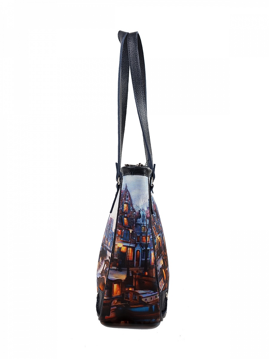 Современная, удобная, сумка выполнена из текстиля, с ручками и отделкой из натуральной кожи, внутри сумки есть 2 открытых кармана для мелочей и один на молнии, легкая, проста в уходе. В сумку входят документы формата А4. Подходит для ношения на плече.