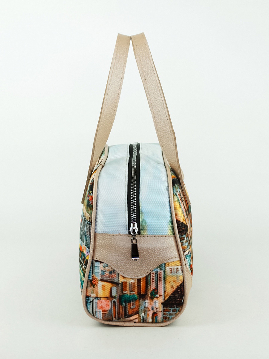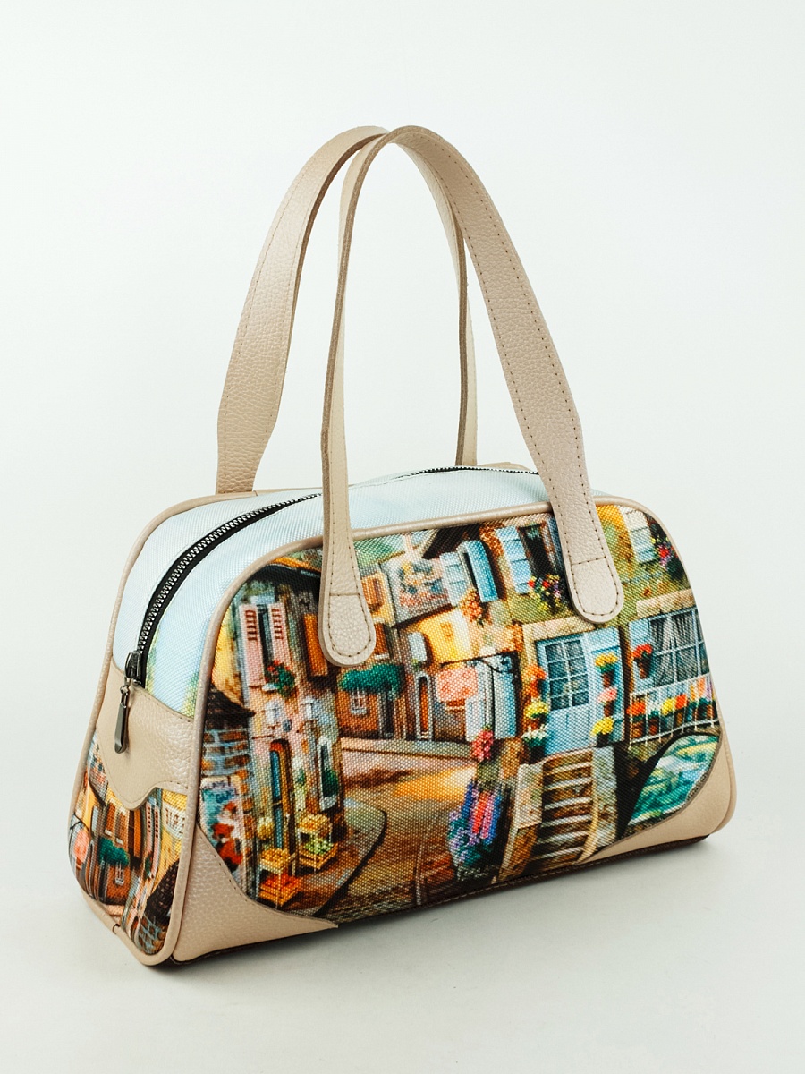 Современная, удобная, сумка выполнена из текстиля, с ручками и отделкой из натуральной кожи, внутри сумки есть 2 открытых кармана формата А6 и один на молнии. Легкая, проста в уходе. Ткань не линяет. Сумки торговой марки Gallato сделаны из армированного нейлона с водоотталкивающей полиуретановой пропиткой.