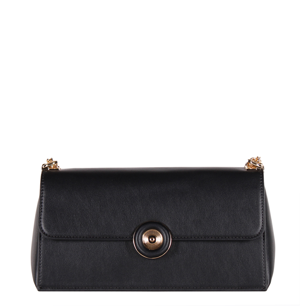 Сумка-багет выполнена из экокожи. Дополнена золотистой фурнитурой. Данная модель закрывается на клапан. Каркас жесткий. Носится на плече за встроенную цепочку, которая перетягивается.
