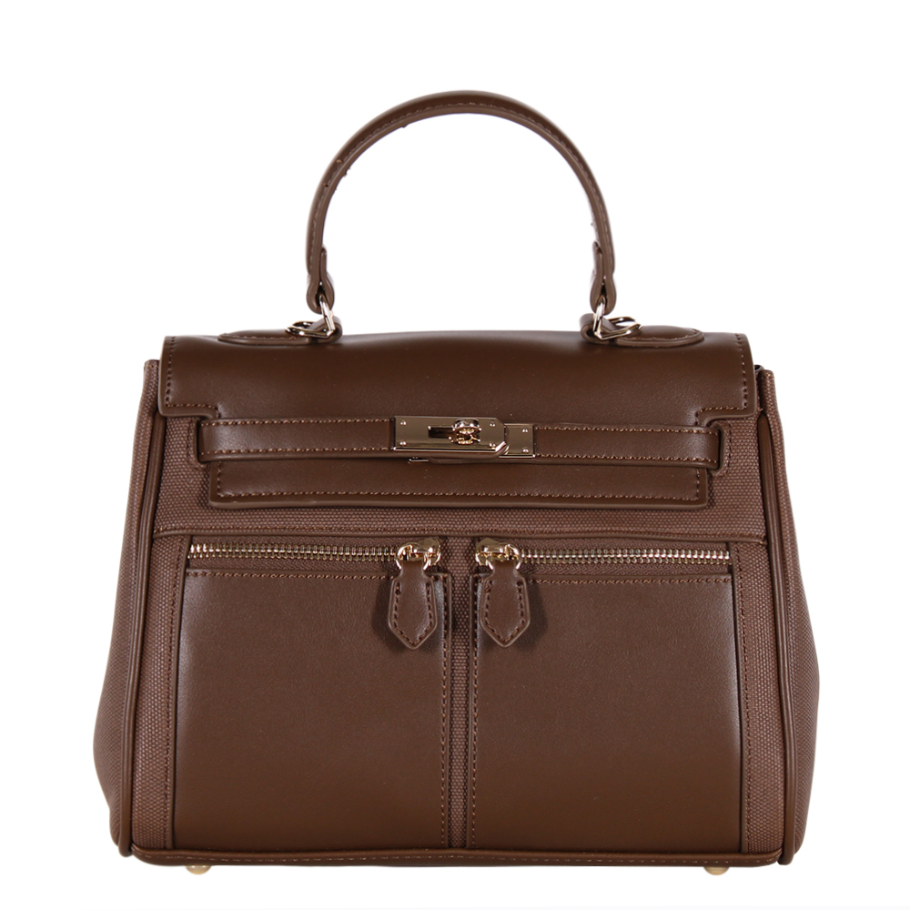 Сумка-сэтчел, выполнена из  экокожи В размере макси. Декорирована эффектной застежкой на передней части. Дополнена золотистой фурнитурой. Данная модель закрывается на клапан. Каркас полужесткий. Носится в руке за встроенную ручку или на плече. В комплекте есть ремень с регулировкой длины. На дне предусмотрены ножки.