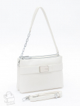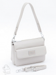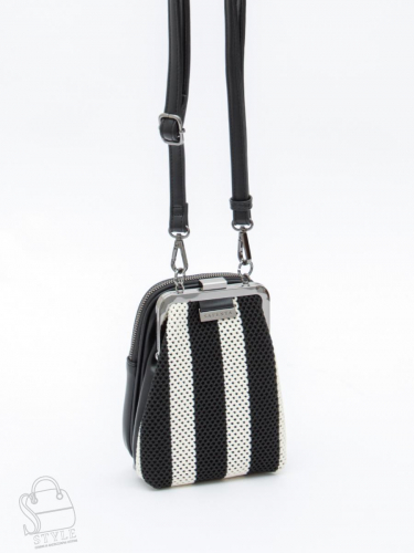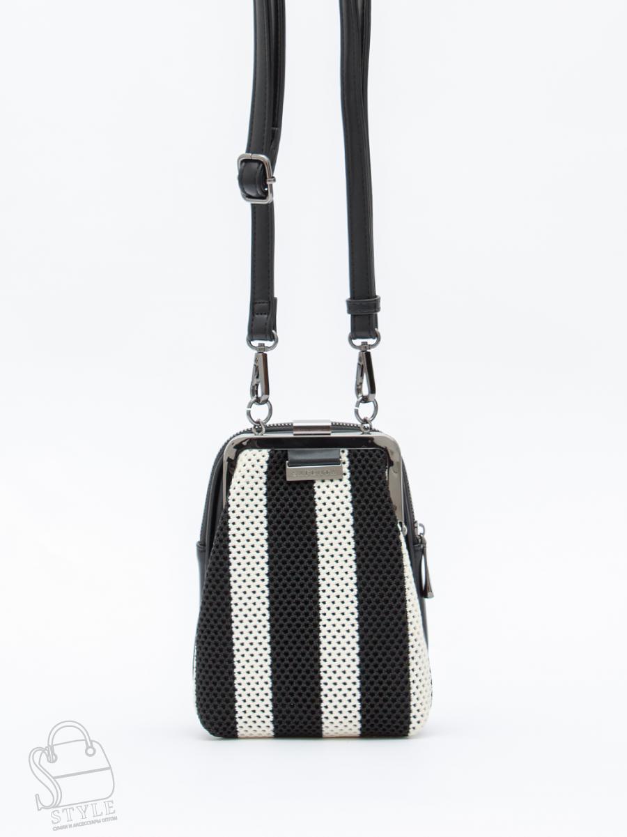 Сумка кросс-боди, выполнена из экокожи и текстиля. Дополнена серебристой темной фурнитурой. Данная модель закрывается на молнии и фермуар, носится на плече. В комплекте имеется ремень с регулировкой длины. Каркас полужесткий.