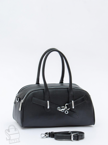 Сумка-багет, выполнена из экокожи. Дополнена серебристой фурнитурой.  Данная модель закрывается на молнии. Носится в руке за встроенные ручки или на плече, съемный ремень регулируется по длине. Каркас полужесткий. На дне предусмотрены ножки.