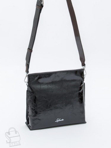 Вместительная модель, выполнена из экокожи. Дополнена серебристой фурнитурой. Данная модель закрывается на молнии, носится в руке  за встроенные ручки или на плече. В комплекте имеется ремень с регулировкой длины. Каркас полужесткий.