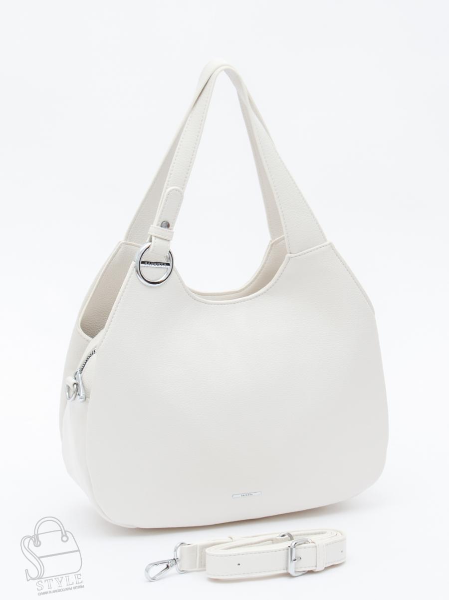 Вместительная модель, выполнена из экокожи. Дополнена серебристой фурнитурой. Данная модель закрывается на молнии, носится в руке  за встроенные ручки или на плече. В комплекте имеется ремень с регулировкой длины. Каркас полужесткий.
