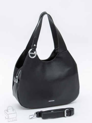 Вместительная модель, выполнена из экокожи. Дополнена серебристой фурнитурой. Данная модель закрывается на молнии, носится в руке  за встроенные ручки или на плече. В комплекте имеется ремень с регулировкой длины. Каркас полужесткий.