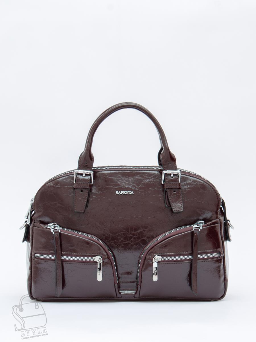 Сумка вместительная, выполнена из экокожи. Дополнена серебристой фурнитурой. Данная модель закрывается на молнии. Каркас полужесткий. Носится  в руке за встроенные ручки или на плече. В комплекте имеется съемный ремень с регулировкой длины и удлиненная ручка.