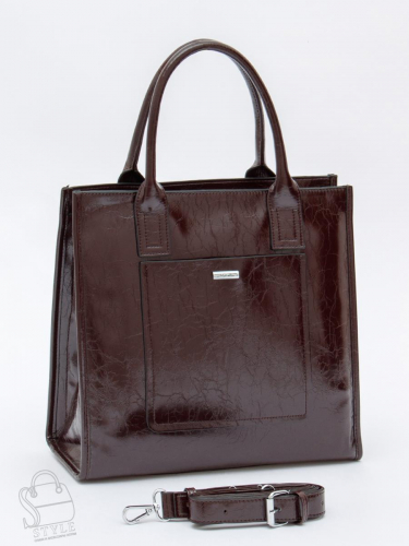 Сумка-тоут, выполнена из экокожи. Дополнена серебристой фурнитурой. Данная модель закрывается на молнию. Каркас полужесткий. Носится  в руке за встроенные ручки или через плечо. В комплекте имеется съемный ремень с регулировкой длины.
