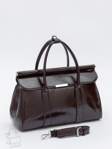 Удобная модель, выполнена из экокожи. Декорирована логотипом на передней части. Дополнена серебристой фурнитурой. Данная модель закрывается на клапан. Каркас полужесткий. Носится в руке за встроенные удлиненные ручки, или на плече. В комплекте имеется съемный ремень с регулировкой длины. На ручках имеется фиксатор. На дне предусмотрены ножки.