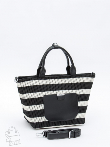 Модель в форме корзинки, выполнена из экокожи и текстиля. Дополнена серебристой фурнитурой. Данная модель закрывается на молнию, носится в руке за встроенные ручки или на плече. В комплекте имеется ремень с регулировкой длины. Каркас полужесткий.
