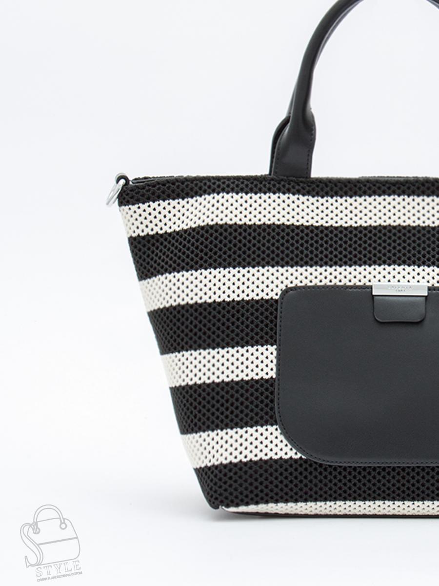 Модель в форме корзинки, выполнена из экокожи и текстиля. Дополнена серебристой фурнитурой. Данная модель закрывается на молнию, носится в руке за встроенные ручки или на плече. В комплекте имеется ремень с регулировкой длины. Каркас полужесткий.