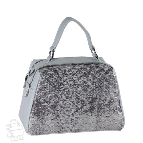 Базовая модель, выполнена из экокожи. Декорирована фактурной вставкой на передней части. Дополнена серебристой фурнитурой. Данная модель закрывается на молнии, носится в руке за ручку или на плече. В комплекте имеется съемный плечевой ремень. Каркас полужесткий.