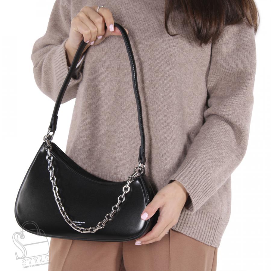 Модель ассиметричной формы, выполнена из экокожи. Дополнена серебристой фурнитурой. Данная модель закрывается на молнию. Каркас жесткий. В комплекте удлиненная ручка, цепочка и плечевой ремень.