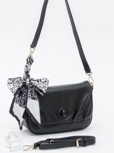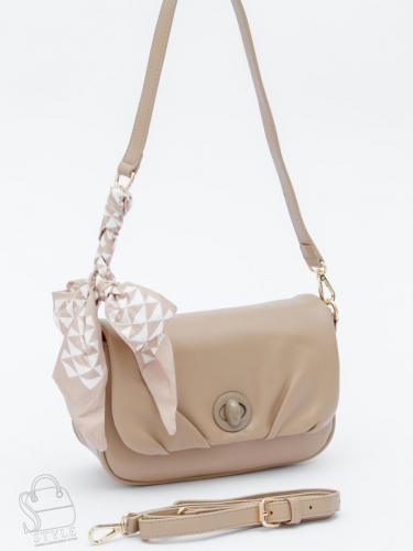 Сумка кросс-боди, выполнена из экокожи. Декорирована ленточкой твилли. Дополнена золотистой фурнитурой. Данная модель закрывается на клапан. Каркас полужесткий. Носится на плече. В комплекте имеется съёмный плечевой ремень с регулировкой длины. А так же в руке за съемную ручку.