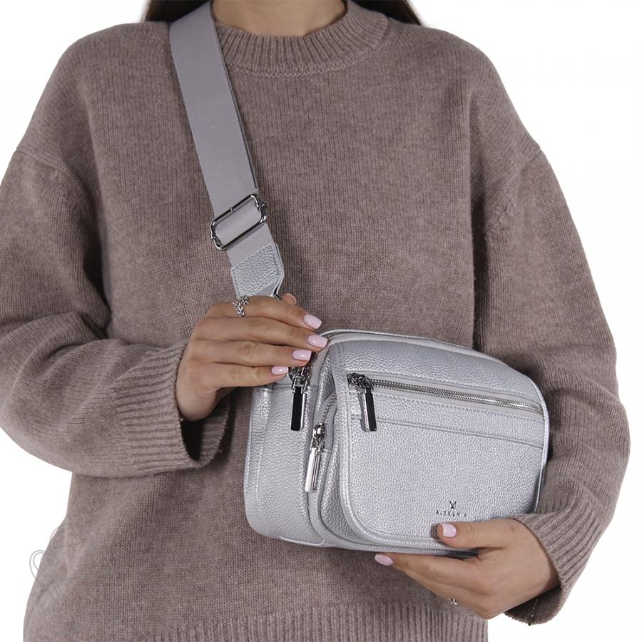 Сумка кросс-боди в стиле спорт-шик, выполнена из экокожи. Дополнена серебристой фурнитурой. Данная модель закрывается на молнии, носится на плече. В комплекте имеется съемный ремень-стропа с регулировкой длины. Каркас полужесткий.