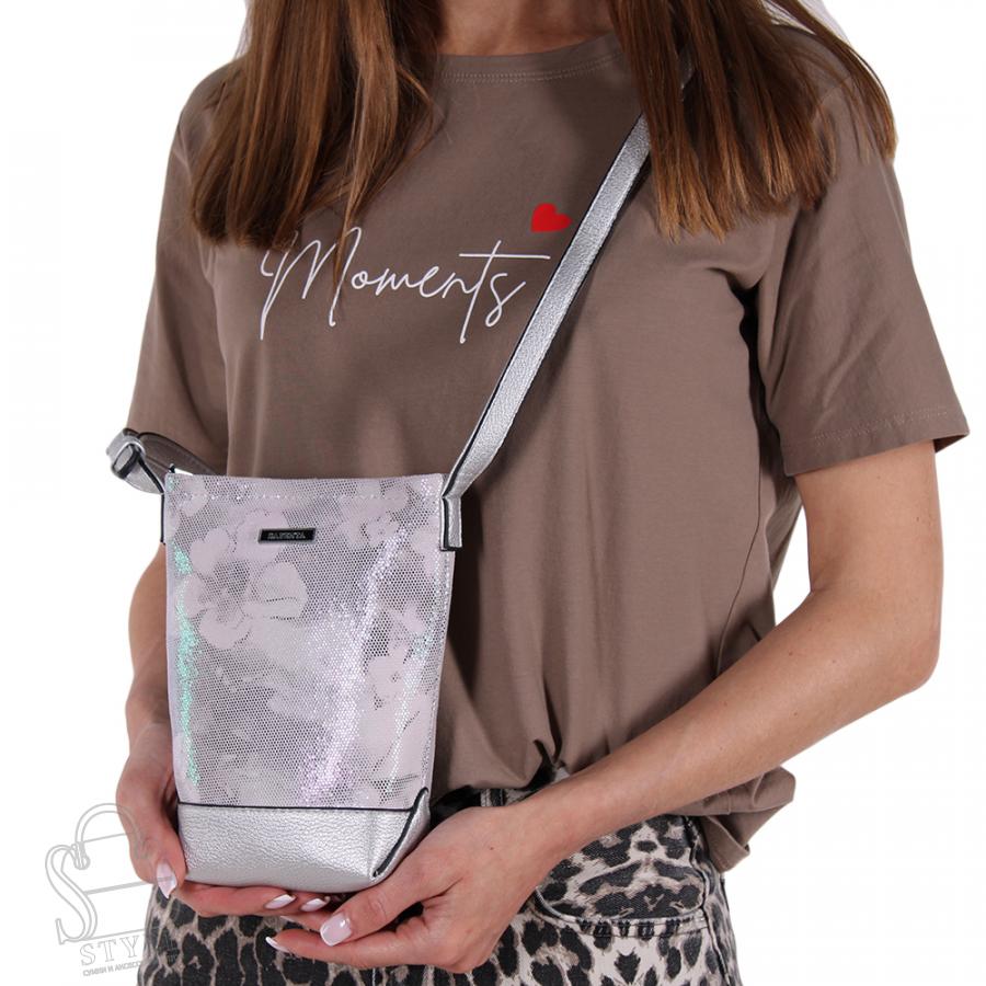 Эффектная модель, выполнена из экокожи. Дополнена серебристой фурнитурой. Данная модель закрывается на молнию. Каркас мягкий. Сумка носится через плечо за встроенный ремень.