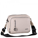 Внутри подкладочный материал с логотипом бренда, на боковых стенках три кармана отрытых и два на молнии.