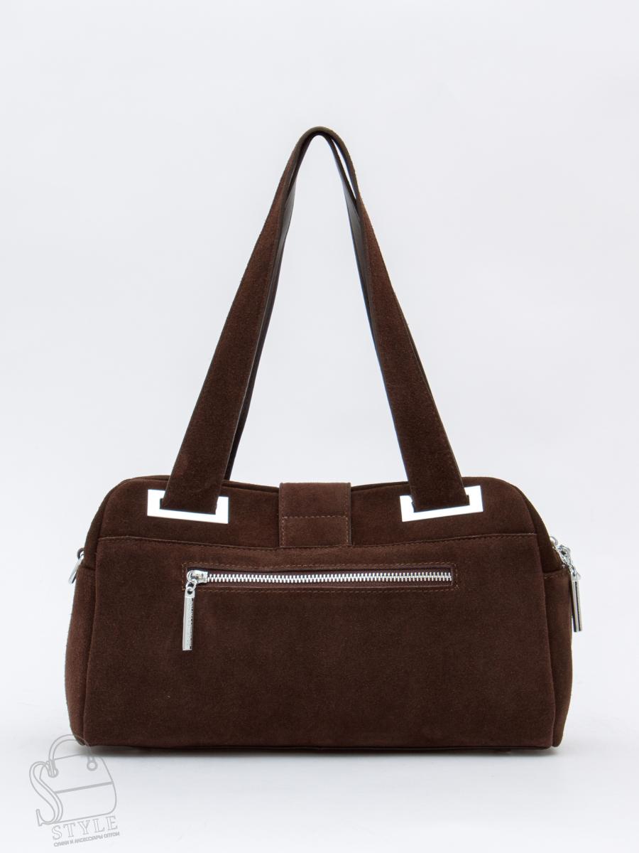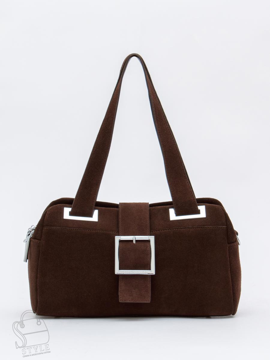 Базовая сумка на каждый день выполнена из натуральной замши. Декорирована пряжкой на хлястике. Дополнена серебристой фурнитурой.