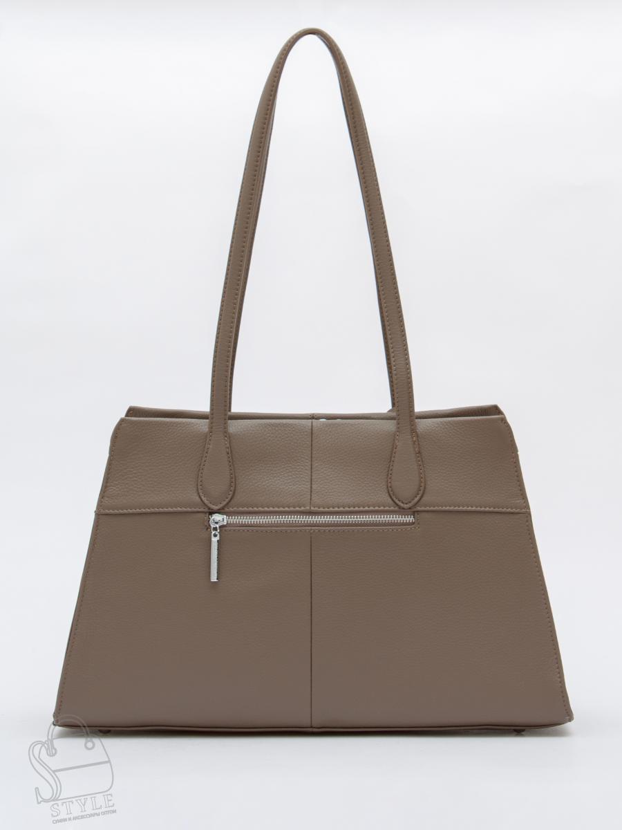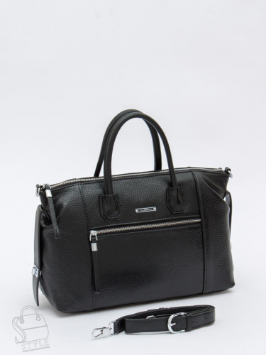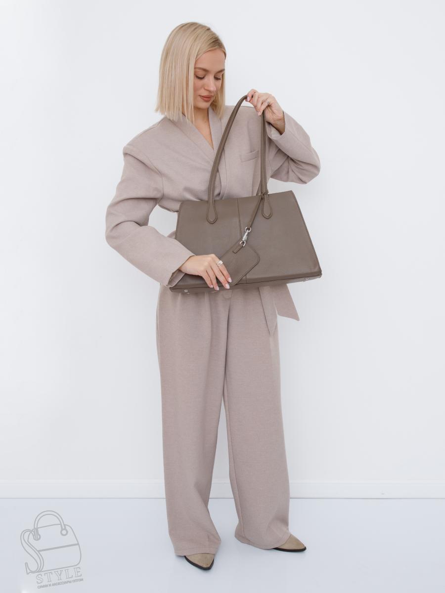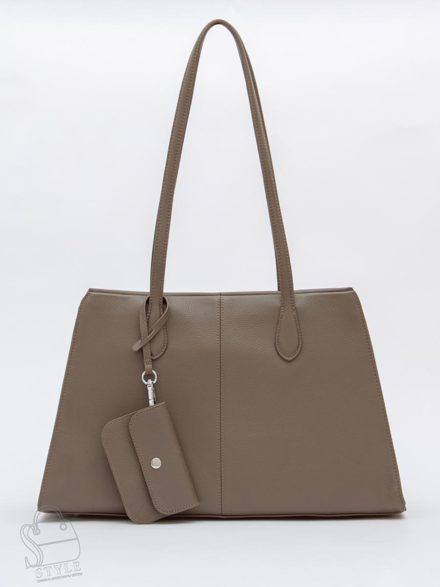 Вместительная сумка, выполнена из натуральной кожи. Дополнена серебристой фурнитурой. Данная модель закрывается на молнию, носится в руке за встроенные ручки. Или на плече. Каркас полужесткий. На дне предусмотрены ножки. В комплекте имеется съемный кошелек.